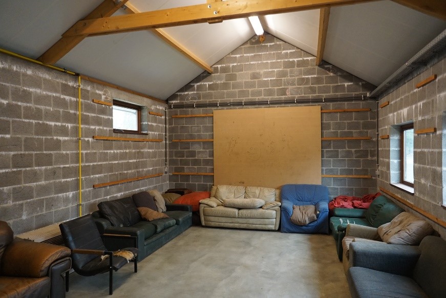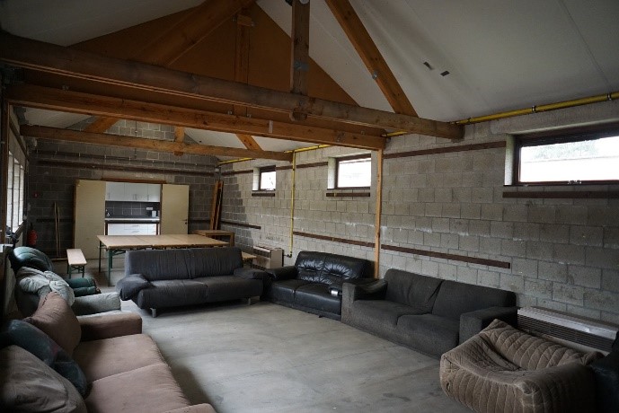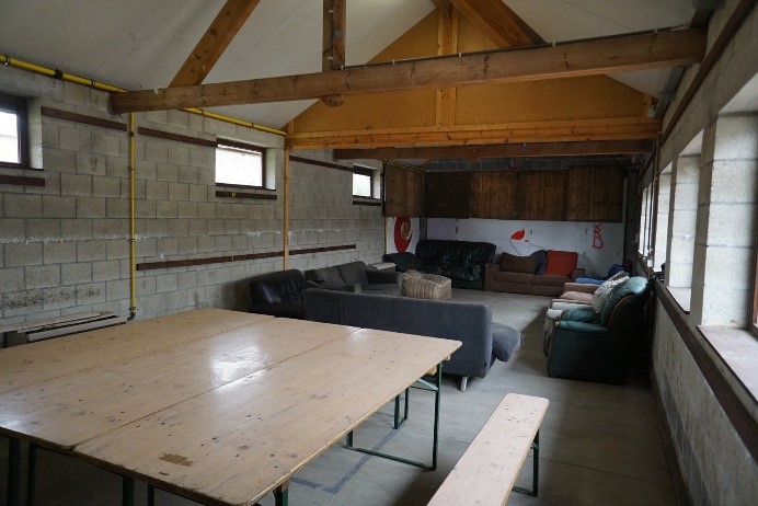 Het dubbellokaal dienst als leefruimte en eetruimte. Tafels en banken krijg je van ons ter beschikking.