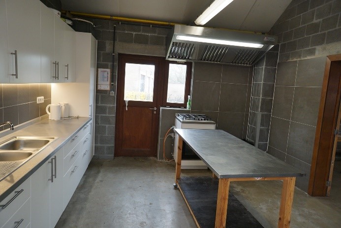 Onze keuken is gloednieuw, gerenoveerd in 2021! Hij is helemaal gebouwd met alle noden van een jeugdorganisatie in het achterhoofd. Grote vuren, potten, bestek en al het nodige zijn aanwezig.