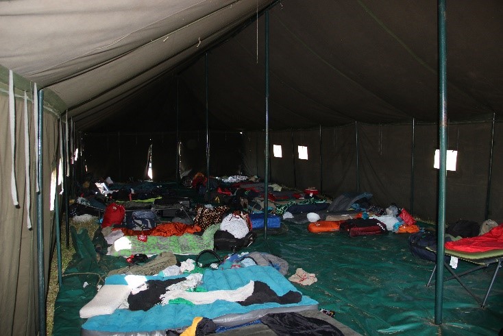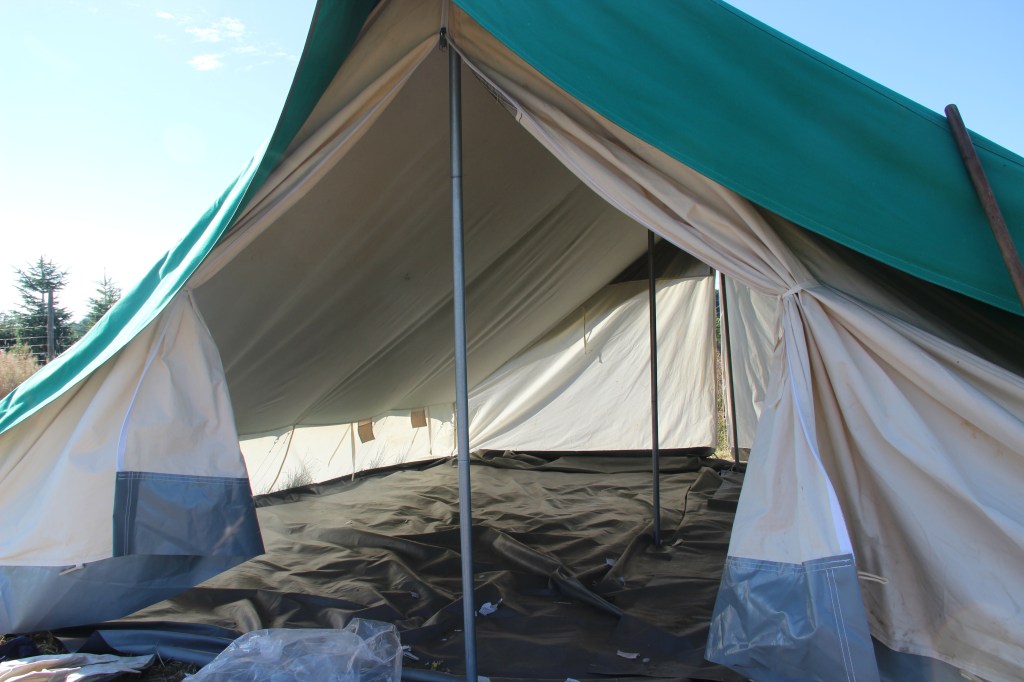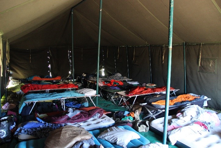 Dit zijn de grootste tenten die we ter beschikking hebben. Hier kunnen 20 mensen comfortabel in slapen